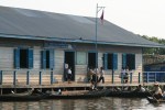The early phase of the journey was straightforward, taking us quickly to the enormous Tonle Sap lake that lies at the centre of Cambodia. Stretching for more than 100 kms and over 20kms wide at some points, this inland sea is a crucial source of water and fish for large numbers of the population. After an hour we arrived at the western edge of the lake and entered wetlands famous for their bird life, the light was great for photos and the river lay ahead. Quite soon we passed a large and prosperous floating village that extended for a couple of kilometres along the river, with countless photo opportunities of the houses, shops, workshops etc that quite literally float on the water. The river height varies so much between the wet and dry seasons that land settlements are nearly impossible to maintain here, and the only permanent structures around were a handful of solid wooden or concrete administrative buildings on stilts more than six metres high. Schools, small retangular paddocks of plants and even a church were some of the more unusual floaters noted! This village was colourfully painted and clearly received significant foreign aid support (from the signs proclaiming various donors), the people were very friendly, the healthy-looking kids laughing and smiling and waving as we passed.
